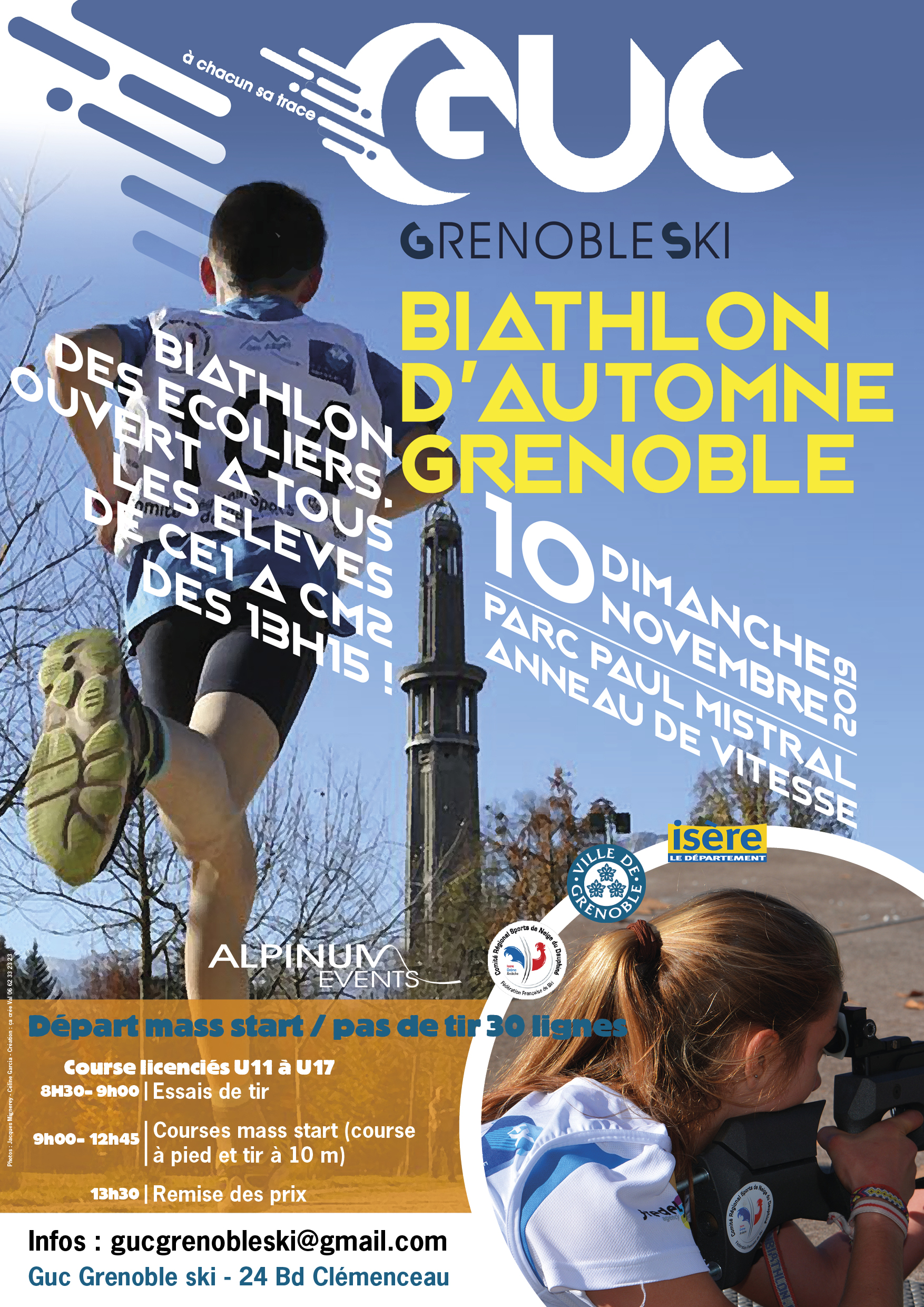 Le GUC Grenoble Ski organise le dimanche 10 novembre prochain son traditionnel Biathlon d’Automne, compétition inaugurant chaque saison le calendrier des courses de Biathlon. Cet événement dédié aux licenciés de la Fédération Française de Ski sera suivi d’une course open : le Biathlon des écoliers.