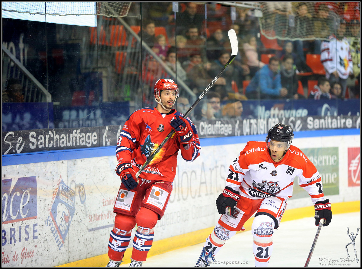 Retrouvez toutes les photos de la victoire des Brûleurs de Loups face aux Boxers de Bordeaux ce vendredi 12 janvier 2018 à Pôle Sud. Les clichés sont signés Philippe Durbet.