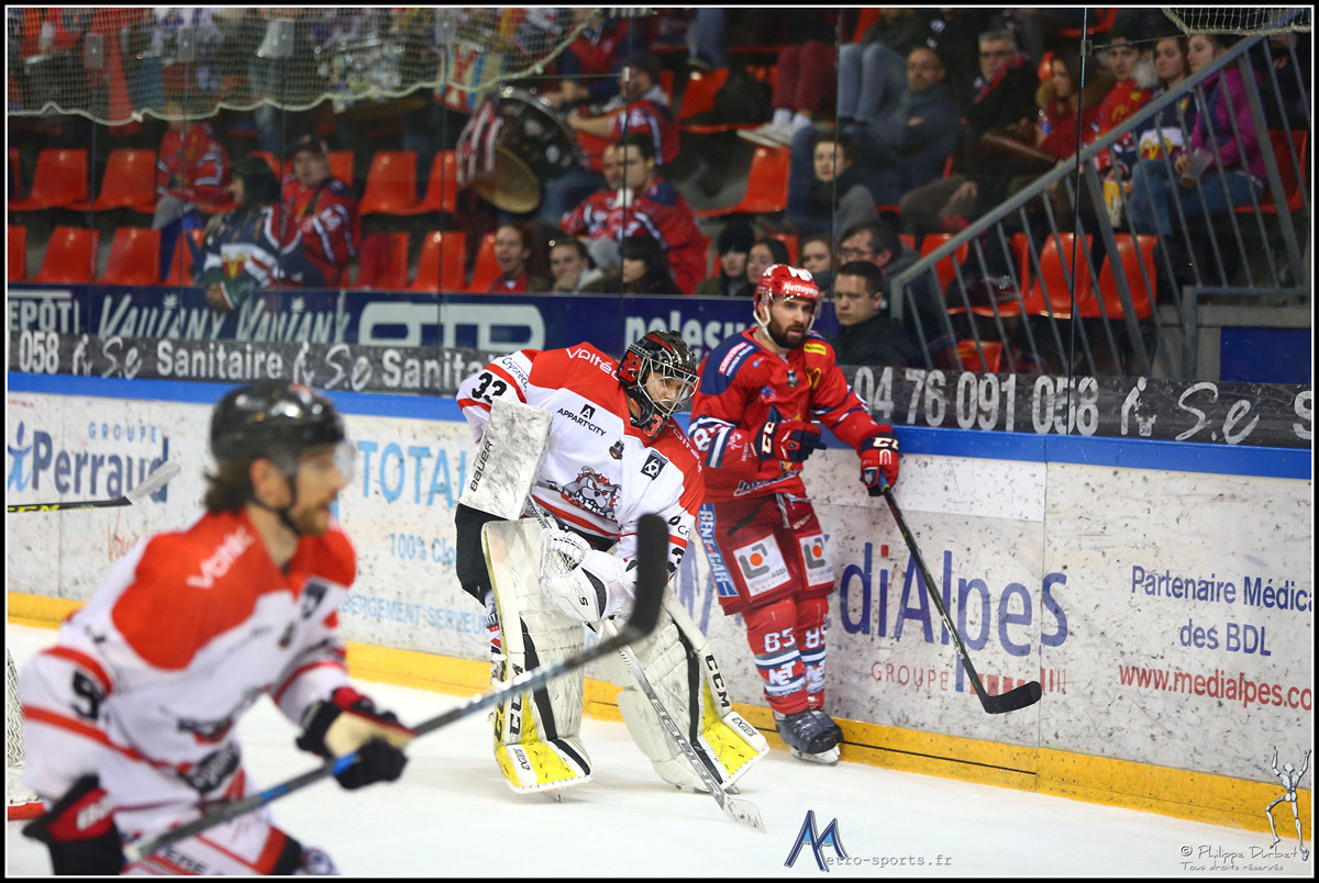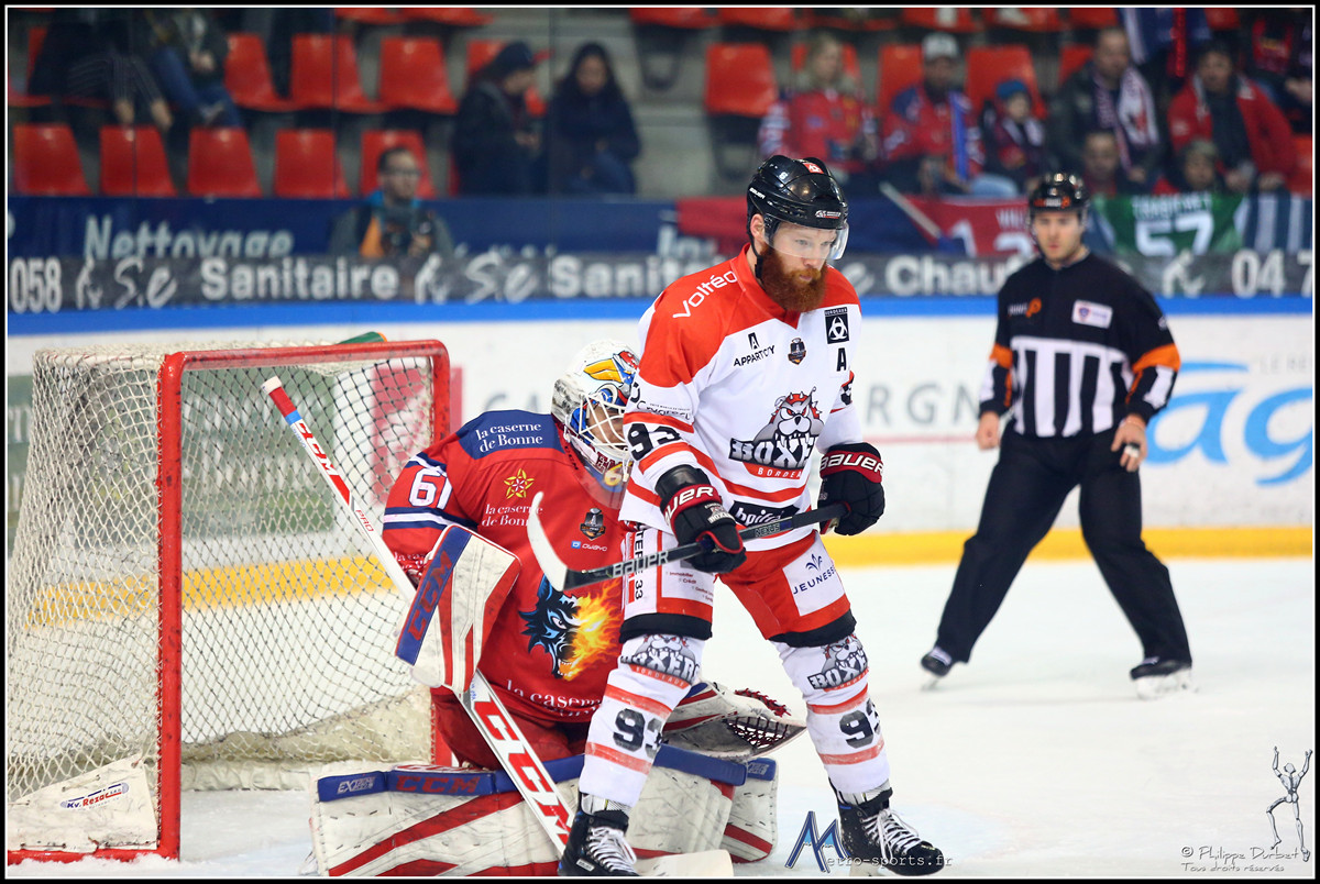 Retrouvez toutes les photos du match #1 de la demi-finale de la Ligue Magnus entre les Brûleurs de Loups de Grenoble et les Boxers de Bordeaux. Les clichés sont signés de notre photographe Philippe Durbet.