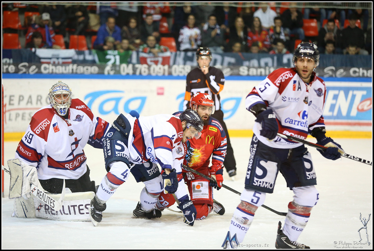 Retrouvez toutes les photos de la victoire des Brûleurs de Loups de Grenoble sur les Ducs d’Angers ce mardi 16 janvier 2018 à la patinoire Pôle Sud.