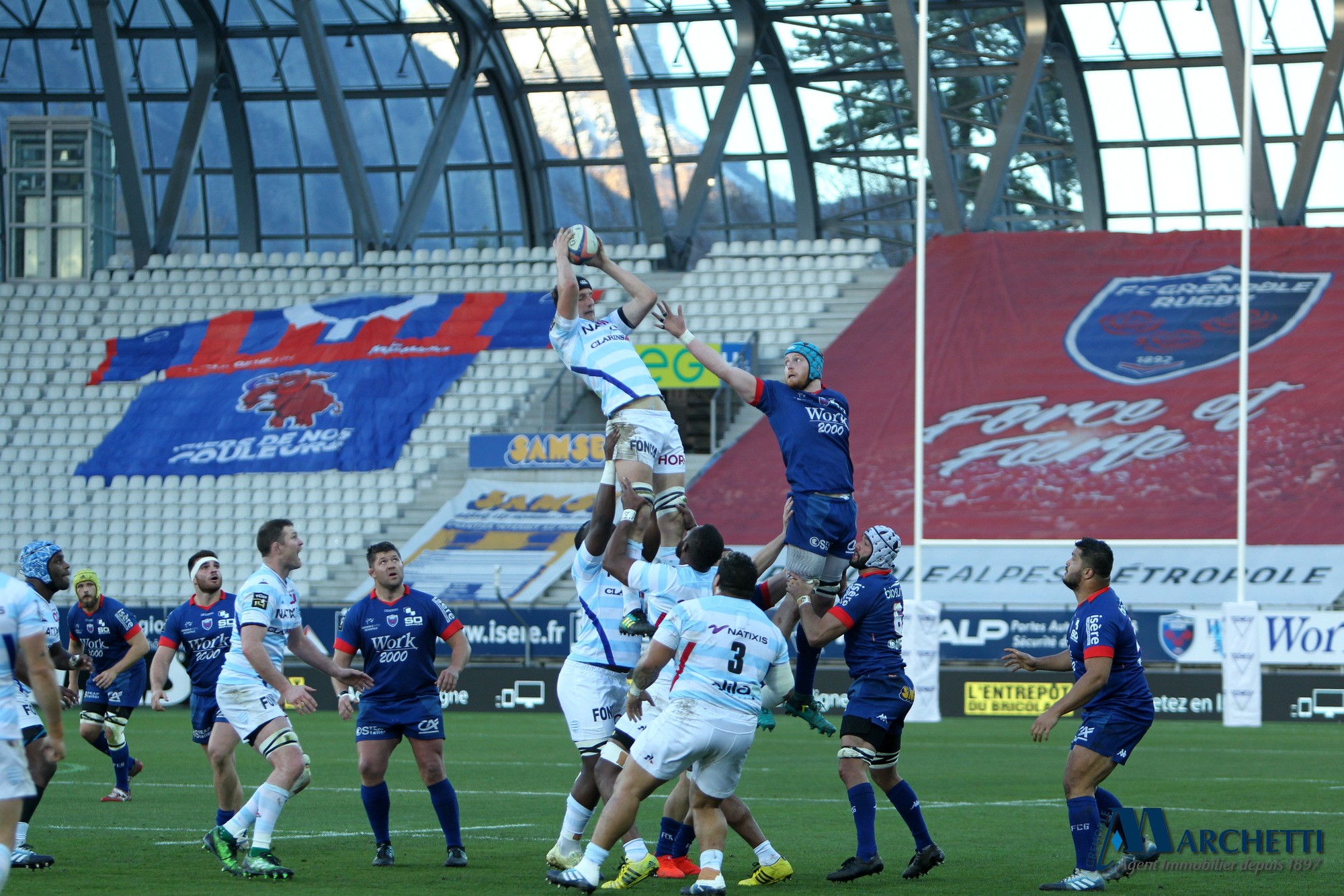 Retrouvez les photos, signées Alain Thiriet, de la rencontre de Top 14 entre le FC Grenoble et le Racing 92 disputée ce samedi 16 mars 2019 au Stade des Alpes.