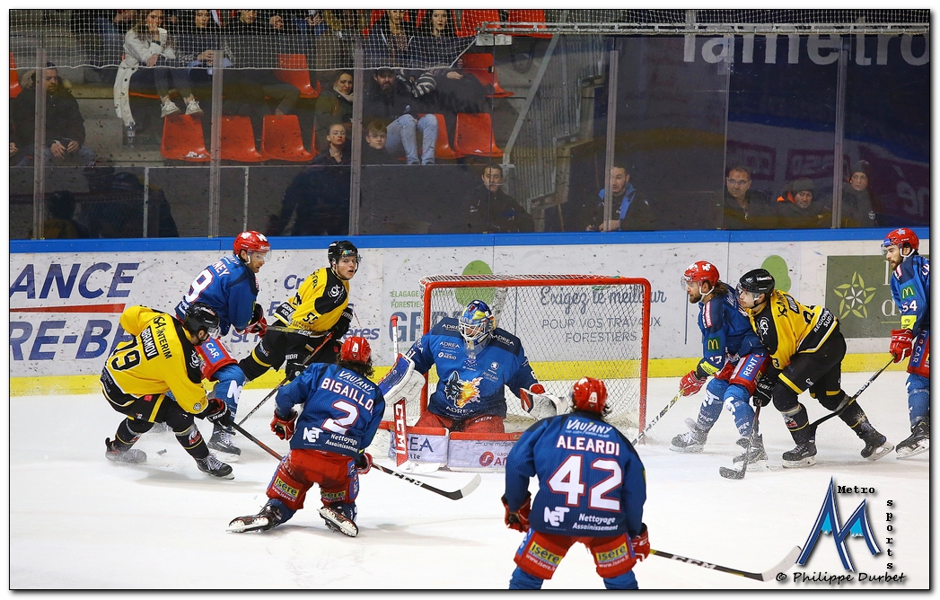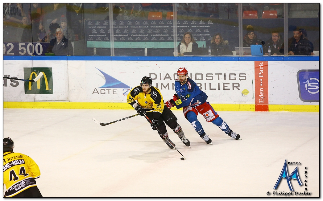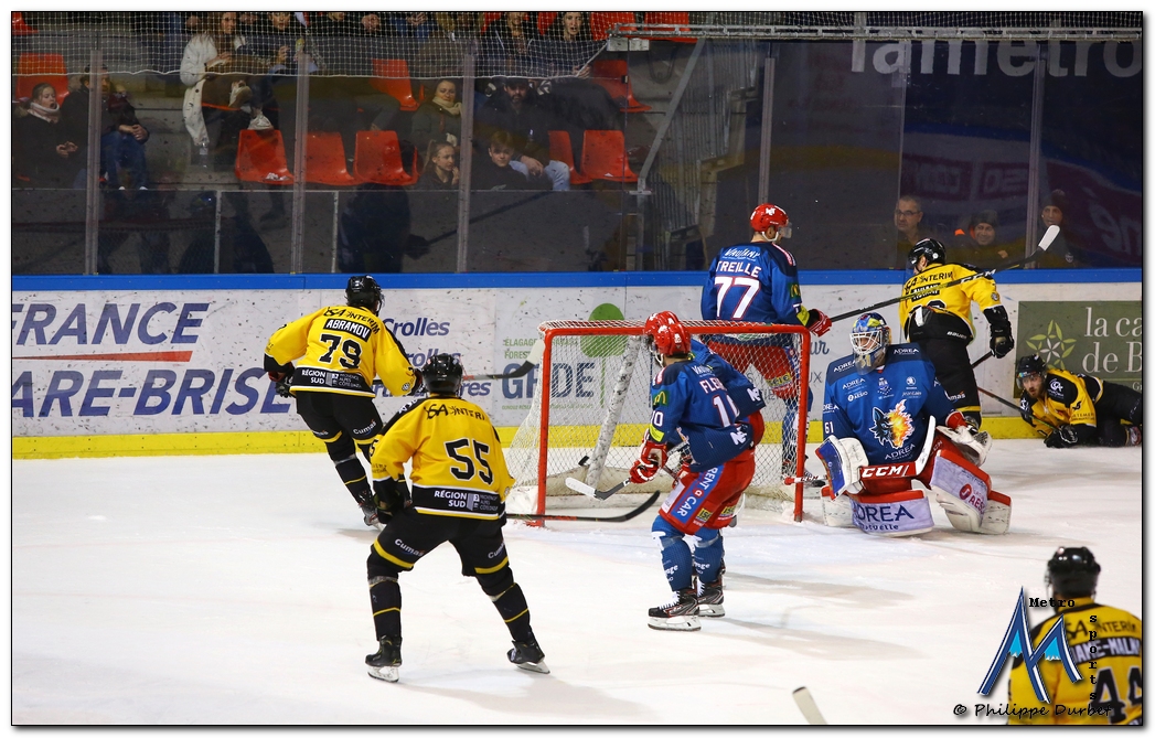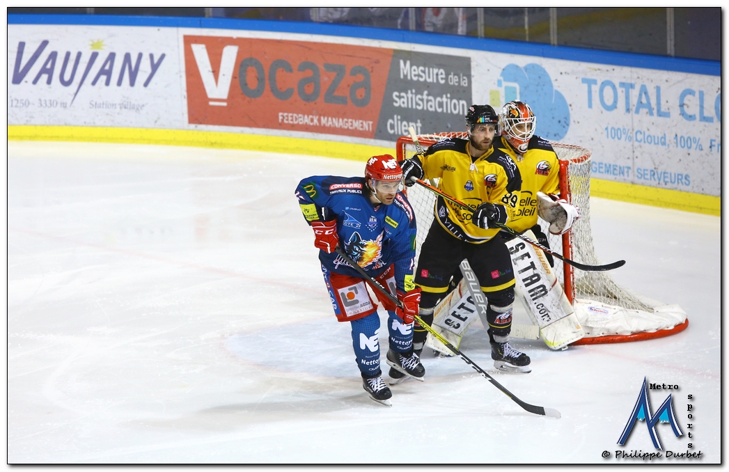 Retrouvez toutes les photos, signées Philippe Durbet, de la Ligue Magnus de hockey-sur-glace qui a opposé ce vendredi 24 janvier les Brûleurs de Loups aux Aigles de Nice.