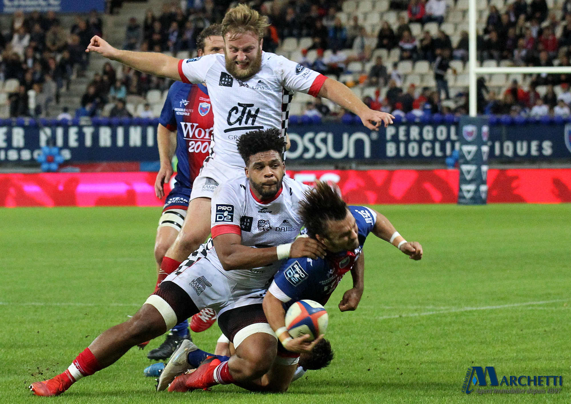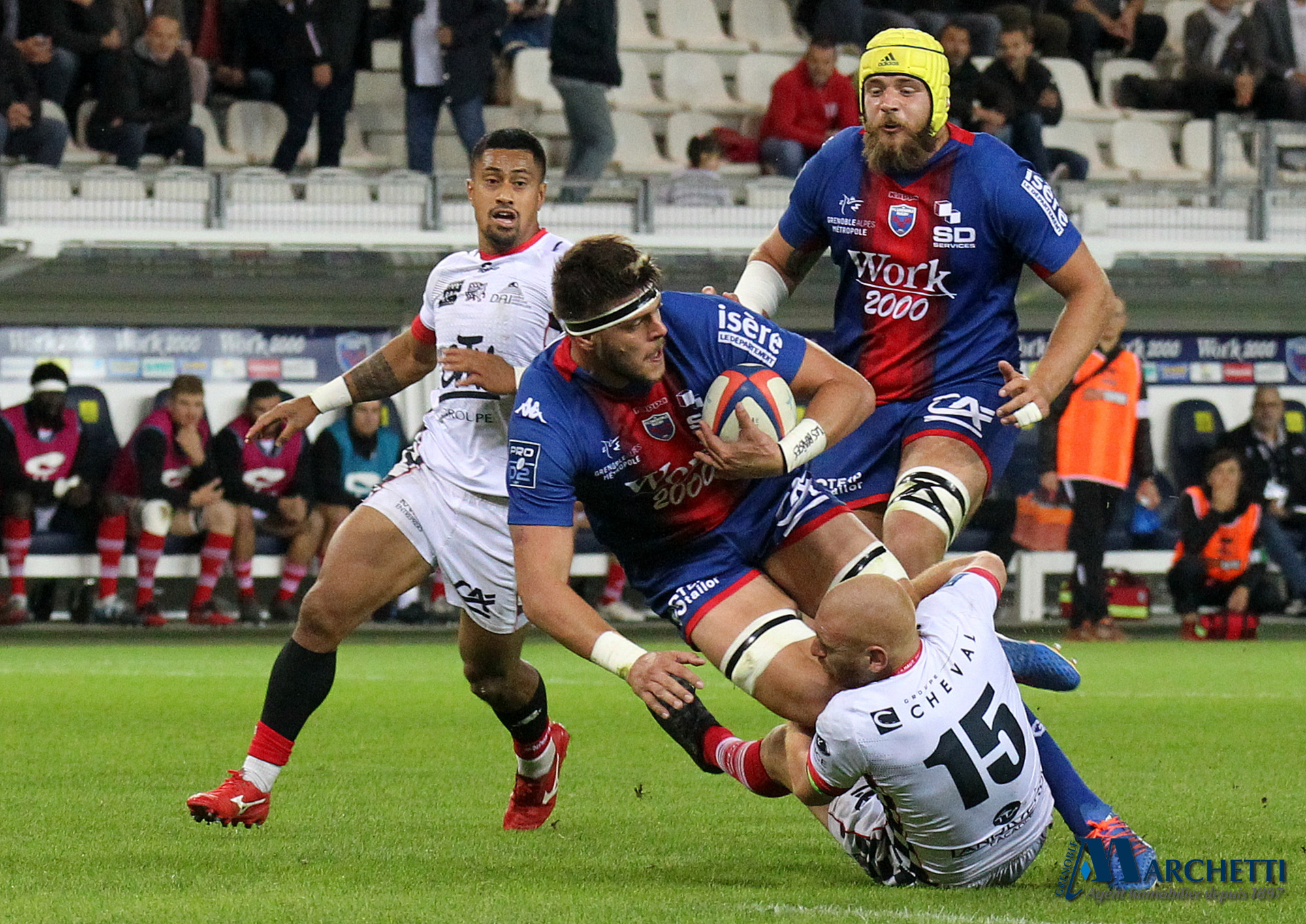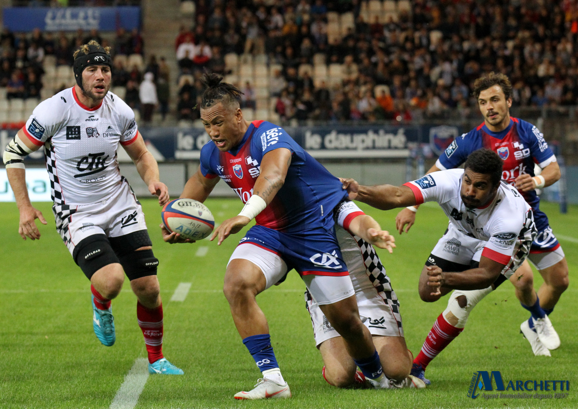 Retrouvez toutes les photos, signées Alain Thiriet, de la rencontre de la 6ème journée du championnat Pro D2 de rugby qui a opposé le FC Grenoble à Valence Romans ce vendredi 4 octobre au Stade des Alpes.