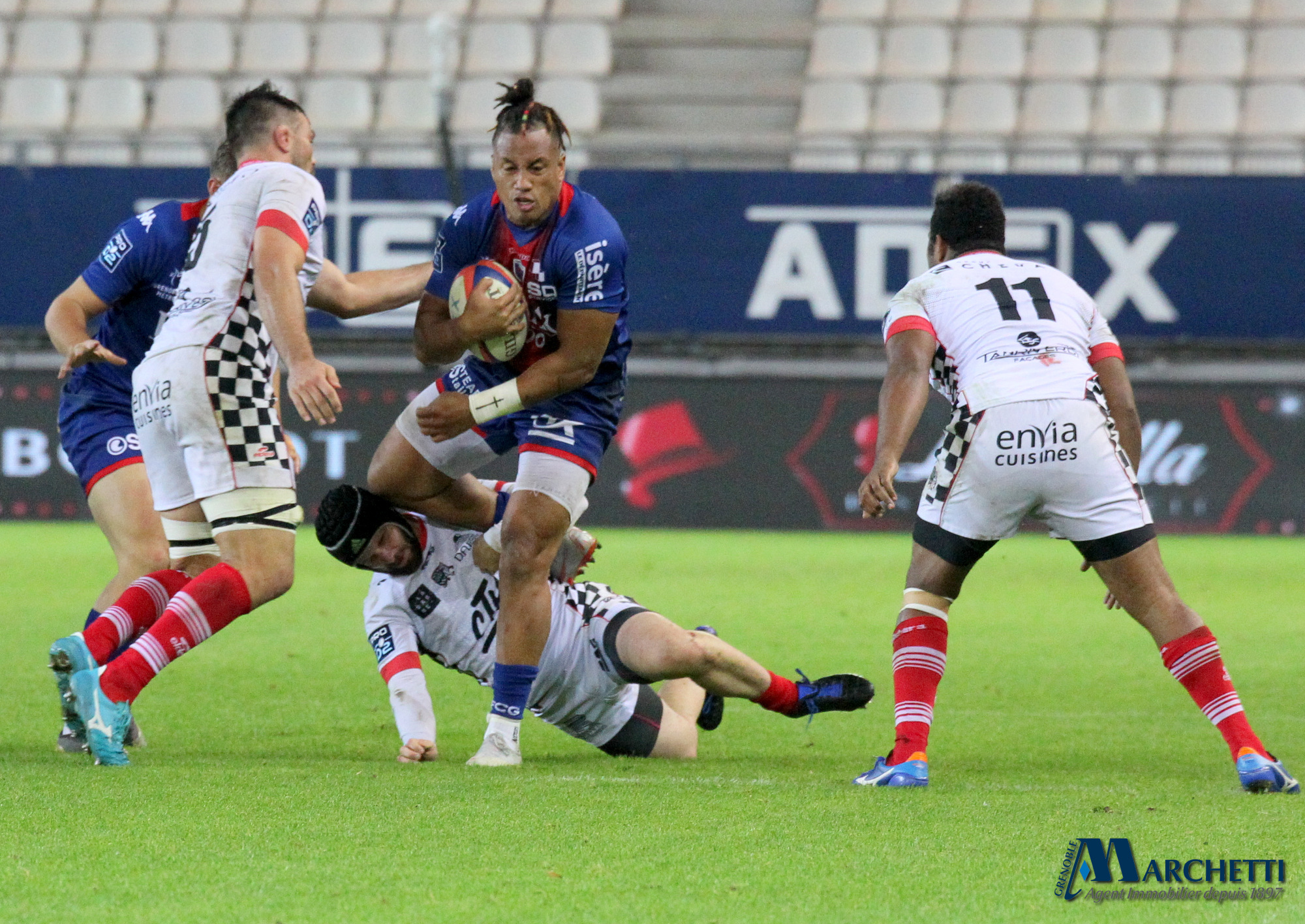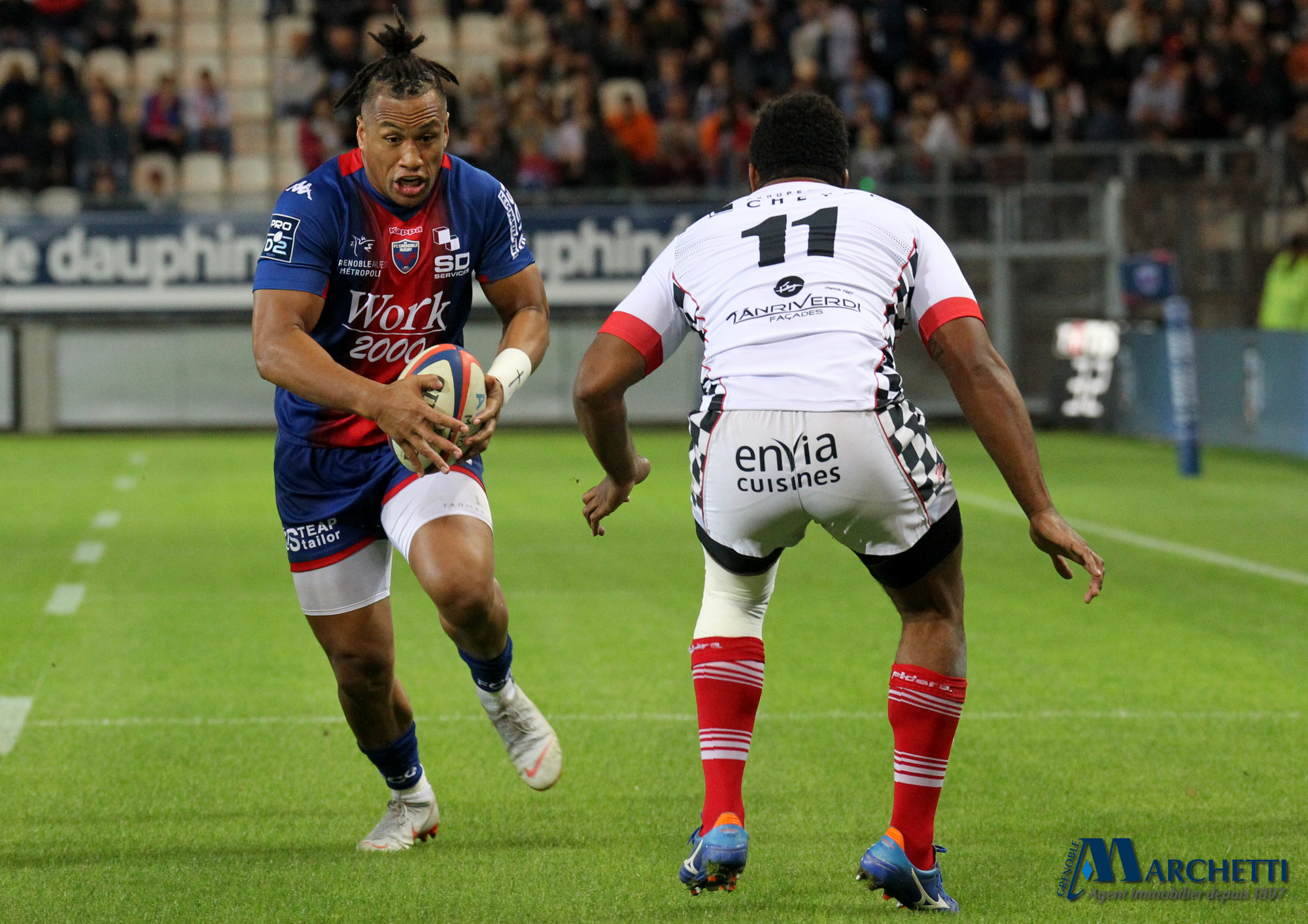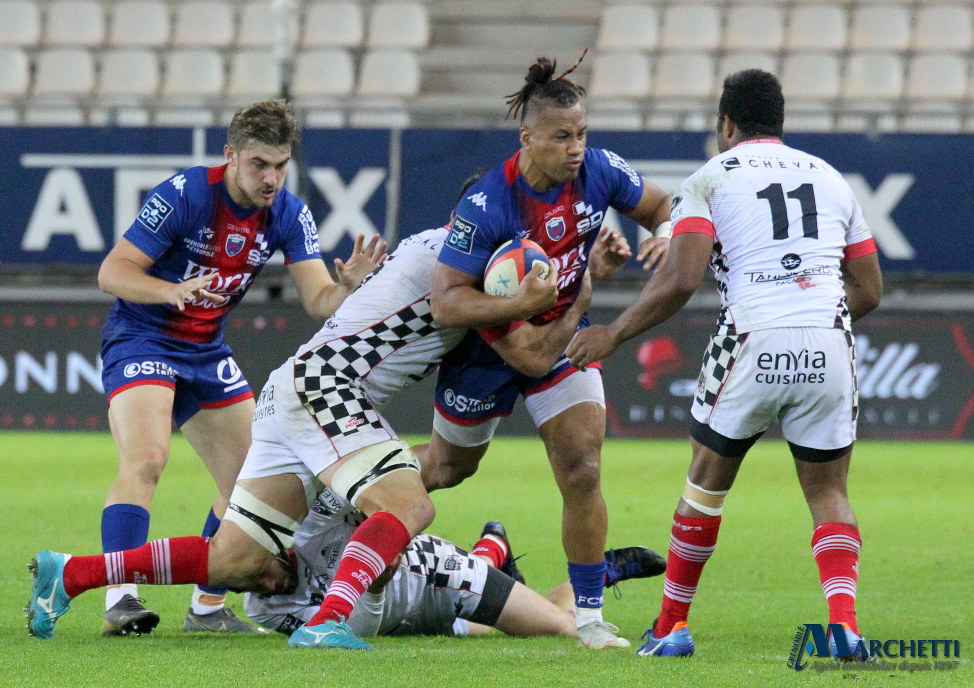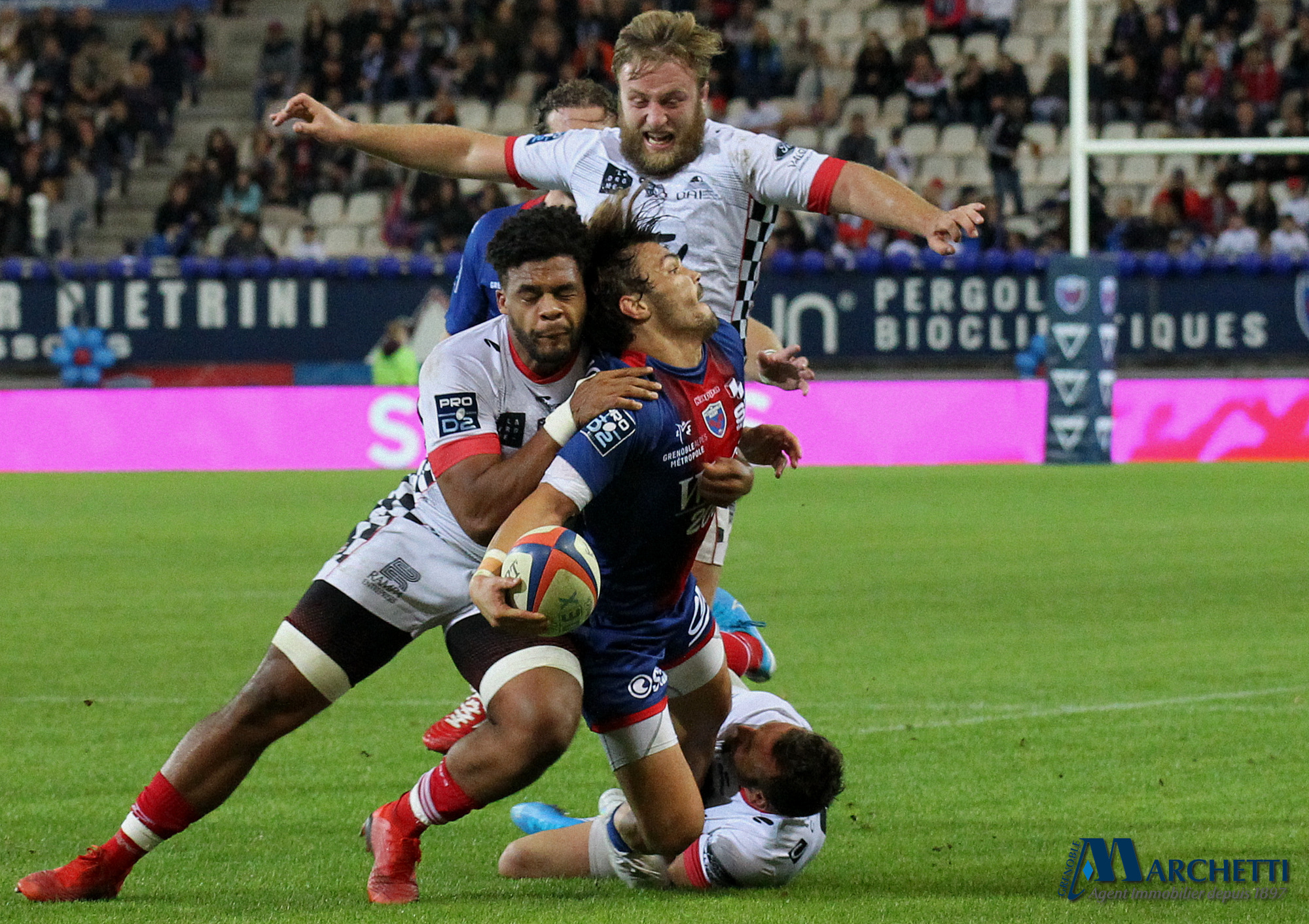 Retrouvez toutes les photos, signées Alain Thiriet, de la rencontre de la 6ème journée du championnat Pro D2 de rugby qui a opposé le FC Grenoble à Valence Romans ce vendredi 4 octobre au Stade des Alpes.