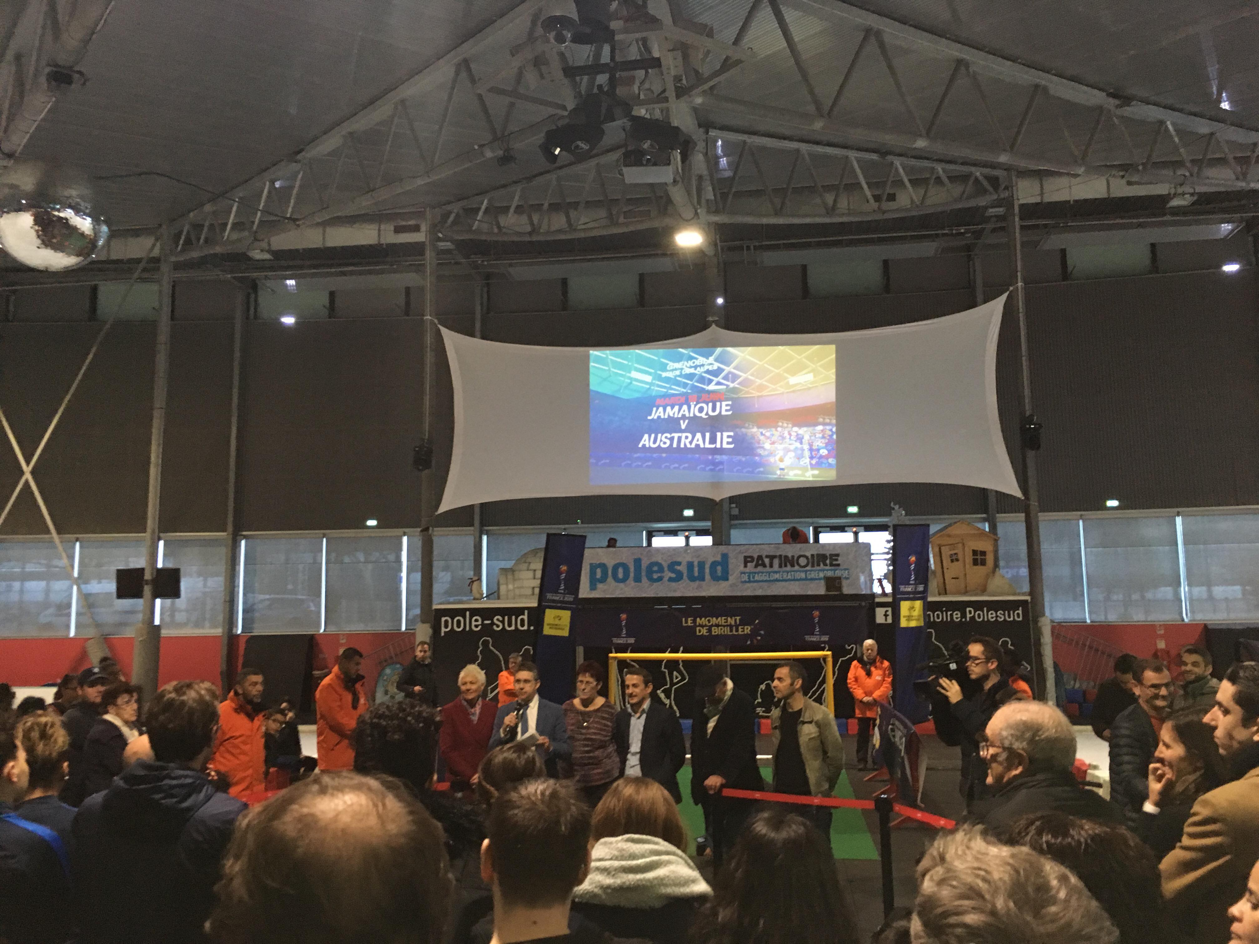 Ce mercredi 27 février, la Grenoble-Alpes Métropole avait convié, presse, élus, mais aussi sportifs et sportives de la région à la patinoire Polesud, pour le lancement du compte à rebours de la compétition. À travers une animation numérique projetée, il fallait inscrire 100 buts – un pour chaque jour avant le tournoi – à la facétieuse Ettie, mascotte officielle de la compétition promue gardienne pour l’occasion.