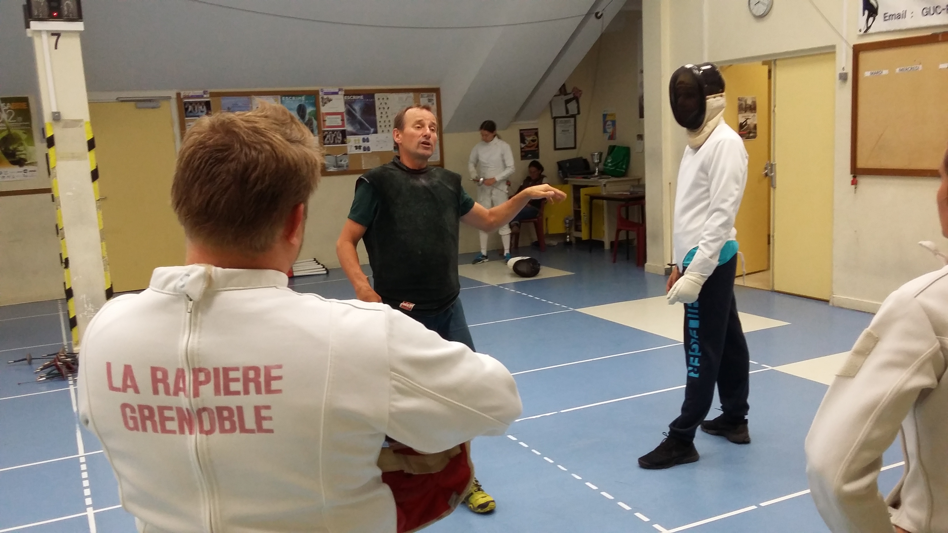 Pendant environ 2H, le maitre d’armes du club, Pascal FERRAND, a fait partager sa passion de l’escrime et l’esprit du club de la Rapière, esprit basé sur la convivialité et l’envie de faire grandir chacun à son rythme. Le maître d’armes a toujours à cœur de faire progresser individuellement, grâce au collectif. Un jeu d’opposition sans jamais opposer les individus.