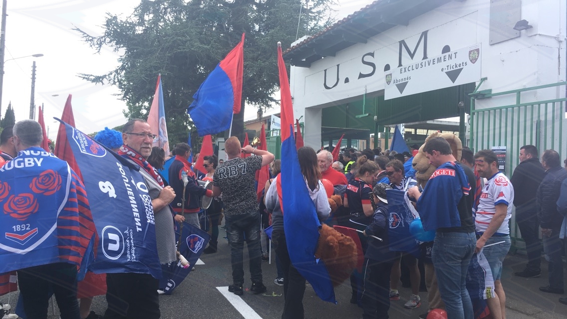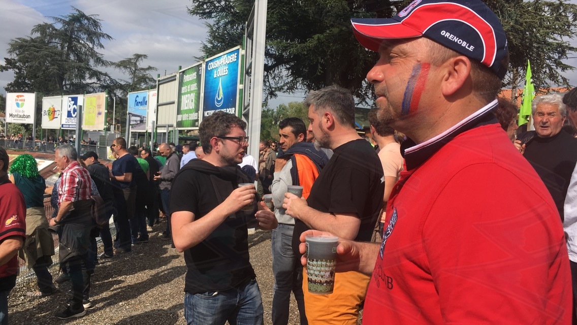 En attendant de retrouver notre article « 24 heures dans la peau des supporters grenoblois », on vous propose un premier retour photos, avec les clichés de notre rédactrice Fanny Haas, sur le déplacement des supporters du FC Grenoble à Montauban ce samedi pour assister à la demi-finale de Pro D2 brillamment remportée par leurs joueurs.