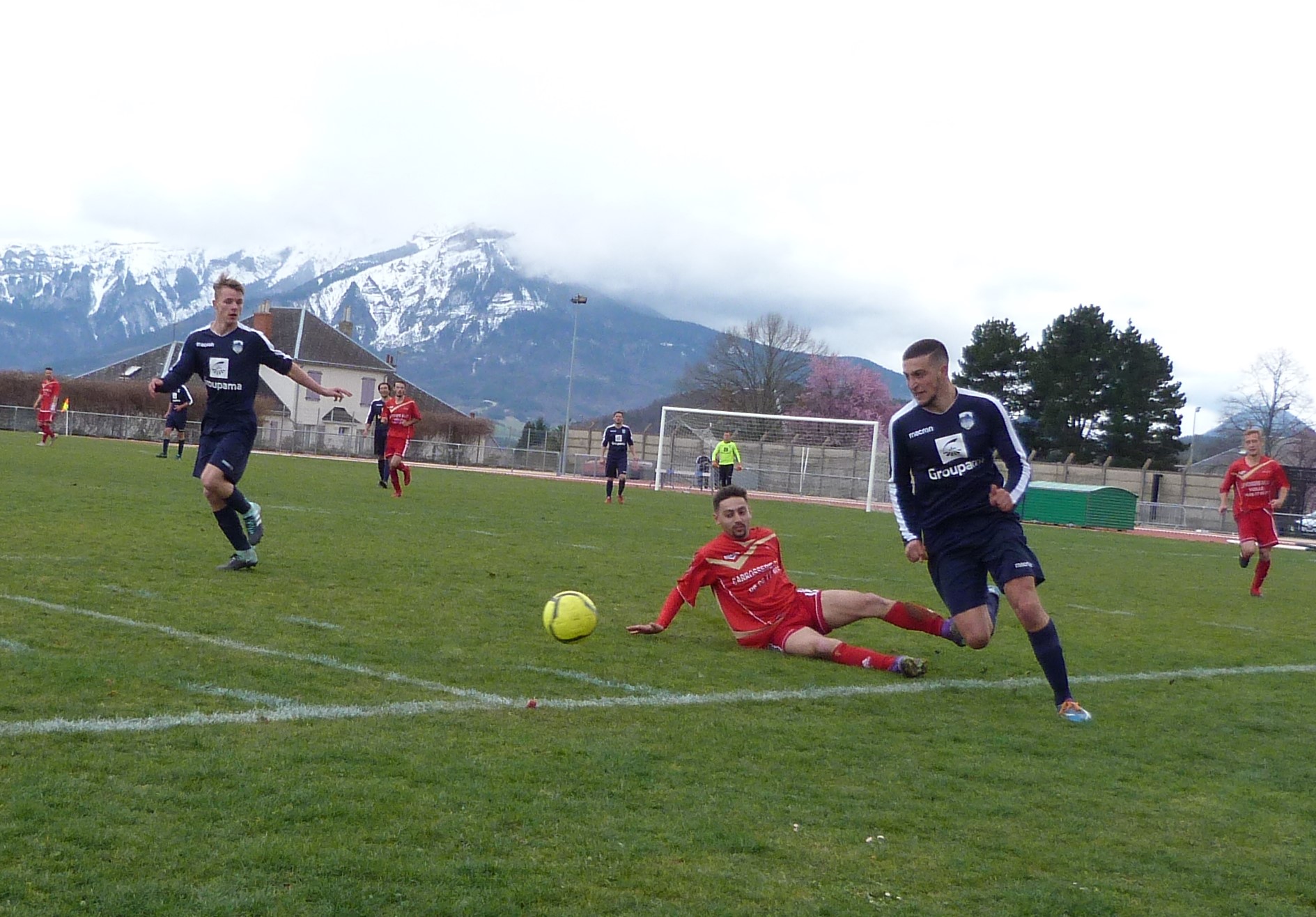 Une fois leur temps faible passé, les Sud Isèrois réussissent à revenir au score grâce à une magnifique reprise de volée pied gauche de Do Nascimento. Son deuxième but cette saison. Ils prennent même l’avantage par l’intermédiaire d’une action bien construite, conclue par Kurt.