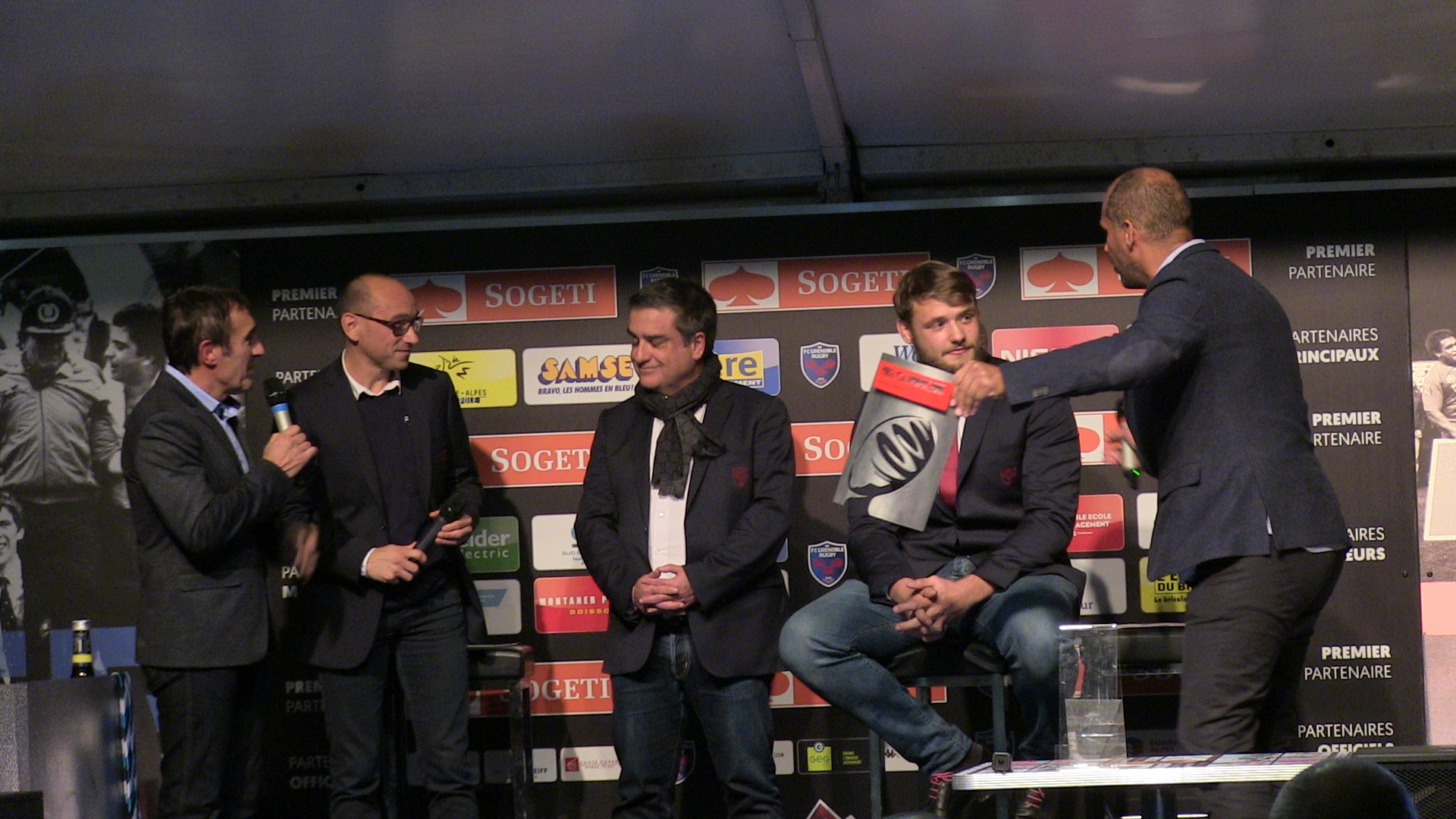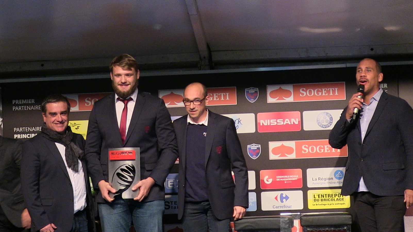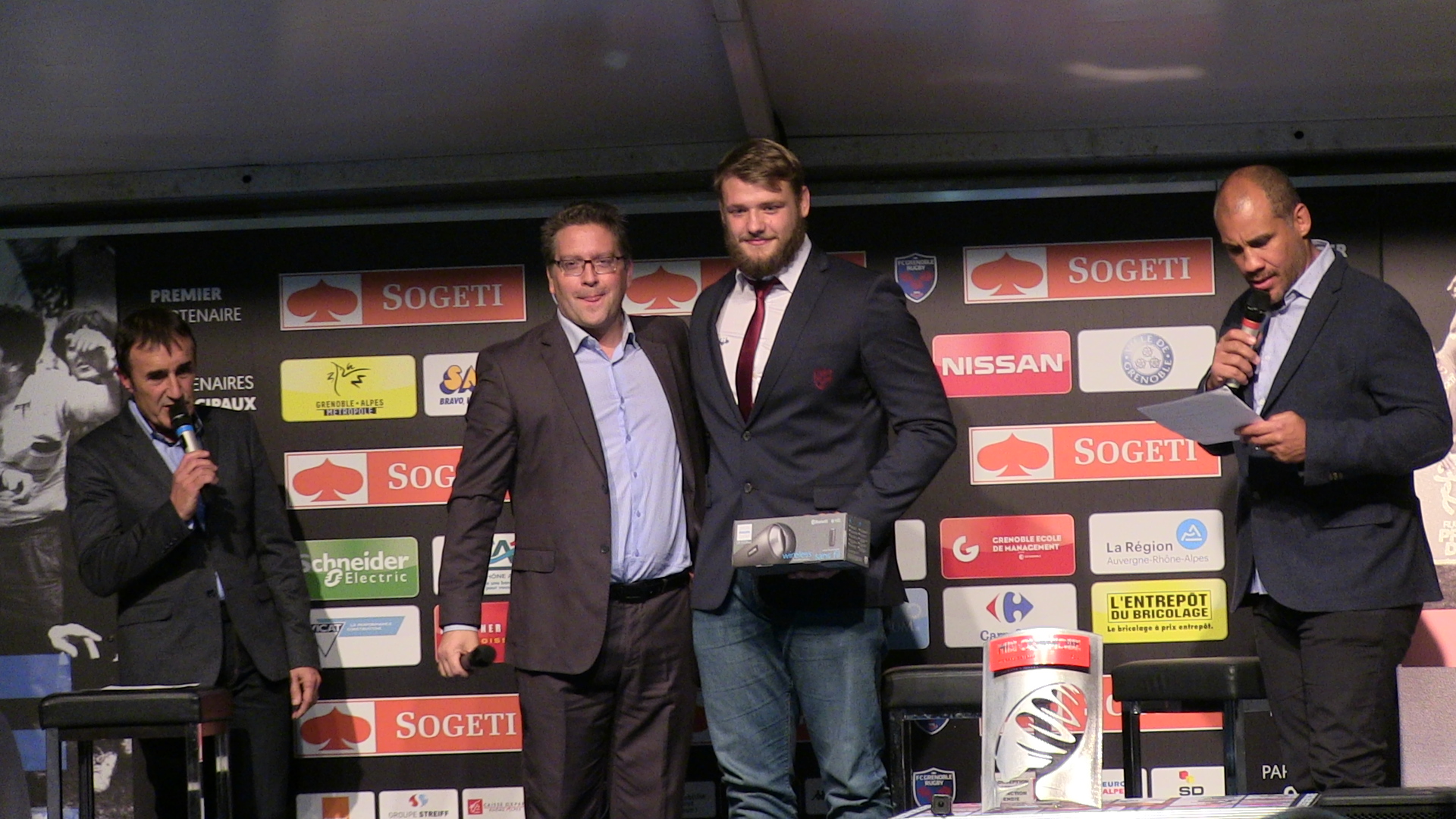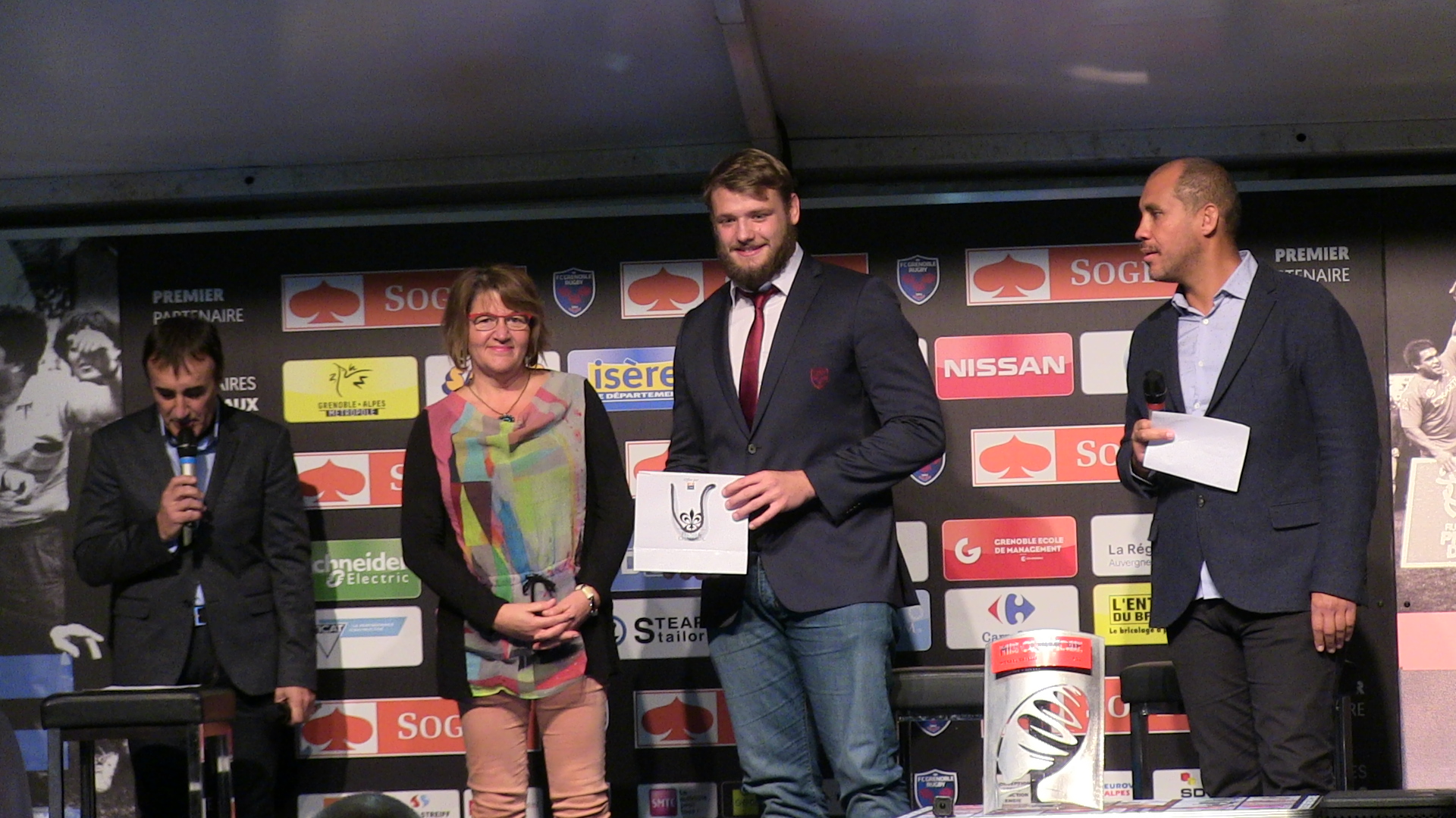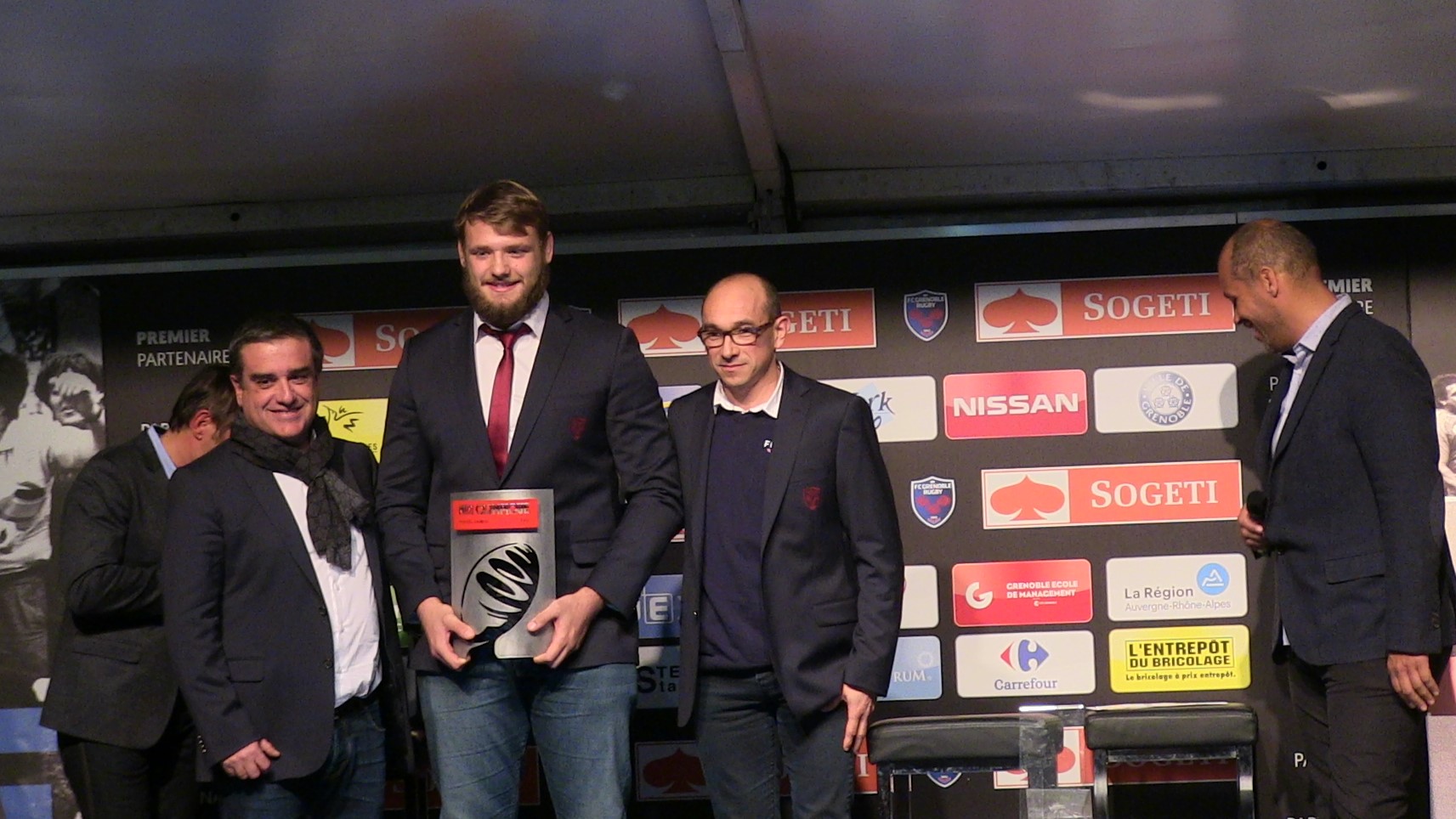 Retrouvez quelques clichés de la cérémonie de remise de l’oscar Midi Olympique au 2ème ligne du FC Grenoble Mickaël Capelli.